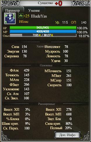 Аура увеличивает Физ. Атк и Физ. Защ. у существа и у владельца (+196 Физ. Защ. и Физ. Атк. (Ур. 11), +14 за Ур.) | |